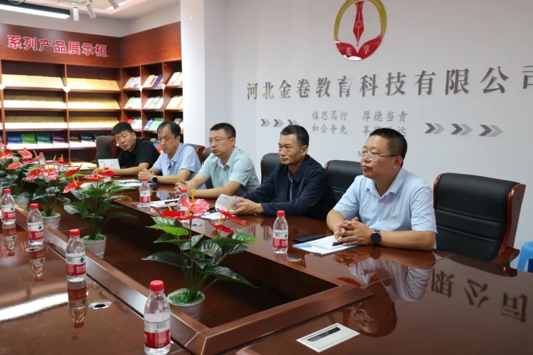 考察組領(lǐng)導(dǎo)及教師首先走進河北金卷“德”與“責”企業(yè)文化展廳并聽取了渠道拓展中心安總講解,深入了解河北金卷企業(yè)發(fā)展沿革、編校團隊建設(shè)、教輔產(chǎn)品體系、營銷服務(wù)足跡等。校領(lǐng)導(dǎo)及教師對金卷堅持16年始終打造負責任教育,貢獻高質(zhì)量教輔,搭建教育同仁交流平臺而做出的努力高度肯定和贊揚。隨后,考察組與總經(jīng)理王亞冰,金卷智庫學(xué)科專家,公司教研中心、教育發(fā)展培訓(xùn)中心、營銷中心、運營中心、聯(lián)考事業(yè)部等領(lǐng)導(dǎo)開展交流座談,詳細了解了公司核心產(chǎn)品《衡水金卷·先享題》系列中學(xué)教輔教材的命題思路、組稿流程以及質(zhì)檢細節(jié),同時對衡水教育高三備考經(jīng)驗、教研模式、教師素質(zhì)提升、尖子生培養(yǎng)等方面進行溝通。此次交流為學(xué)校教學(xué)管理、教研提升、招生發(fā)展、培優(yōu)工作等交流經(jīng)驗,為未來雙方進一步合作打下良好基礎(chǔ)。