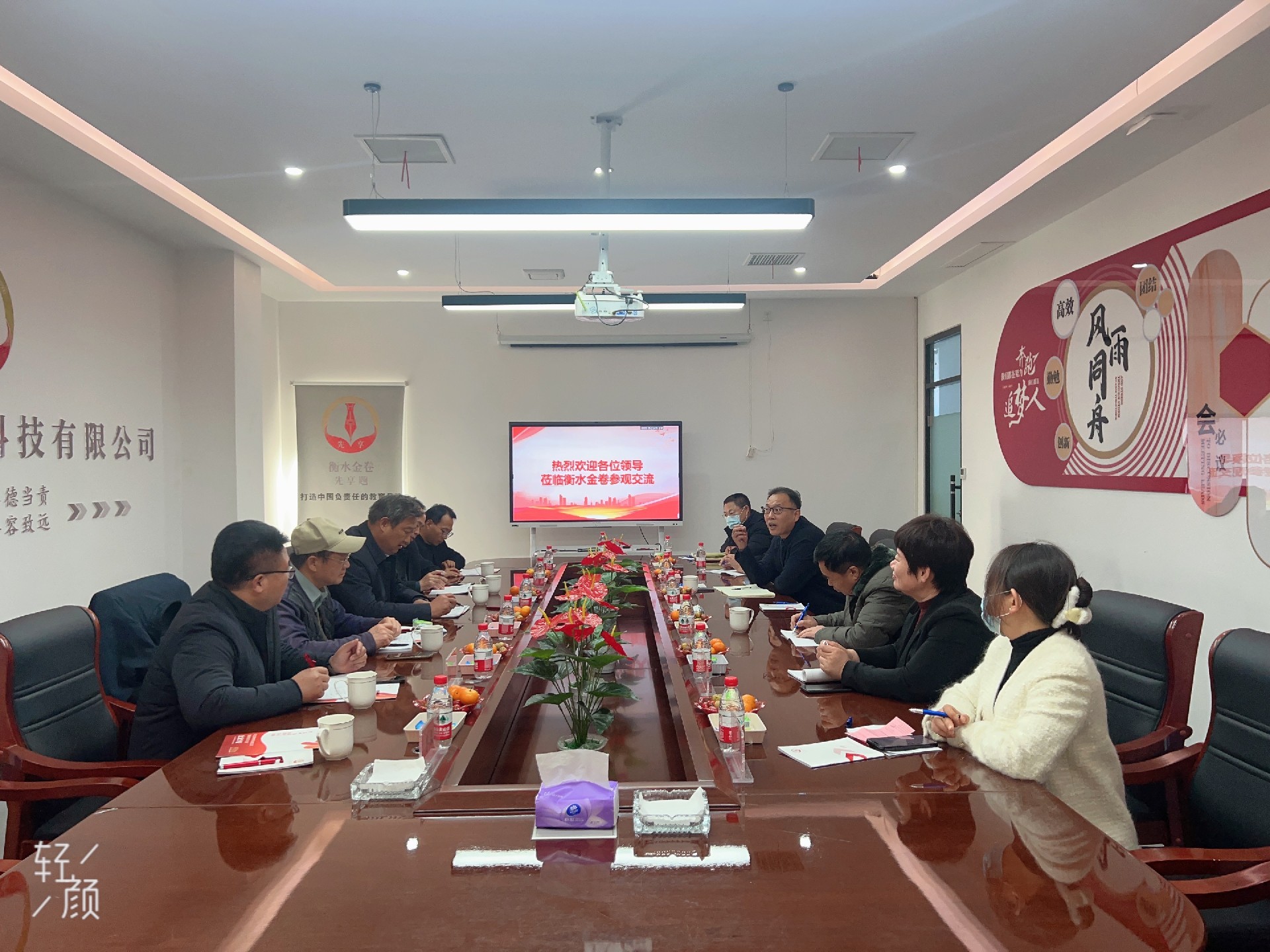 2023年11月23日下午,河南省鎮(zhèn)平縣教育體育局黨委書記、局長郭學(xué)中一行5人蒞臨河北金卷教育科技有限公司走訪交流,金卷特邀衡水市桃城區(qū)教育局原黨組成員、衡水市教師進(jìn)修學(xué)校副校長田海潮,衡水市第十三中學(xué)原黨委書記、校長王福巨陪同考察??疾靾F(tuán)一行首先走進(jìn)河北金卷企業(yè)文化展廳聆聽講解,近距離觀摩試卷編輯、排版等研發(fā)過程,對金卷植根于衡水**教育資源、把脈新高考教育導(dǎo)向、打造負(fù)責(zé)的教輔的實踐做法表示高度肯定和贊揚。